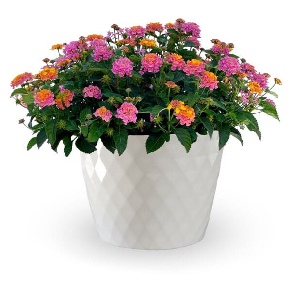 apaļš augums, aug saulē, zied bez apstājas, košas krāsas