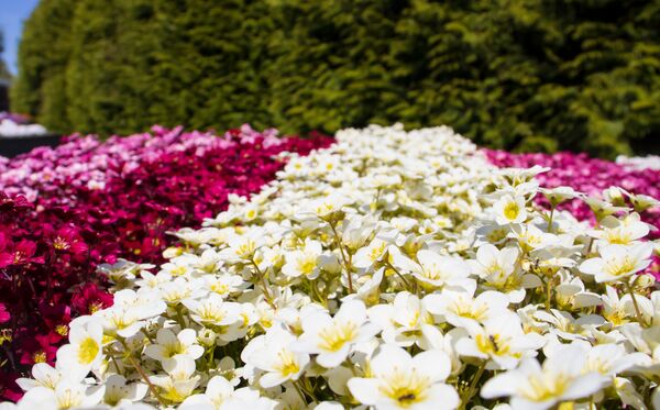 apaļš augums, aug saulē, zied visu vasaru, košas krāsas
